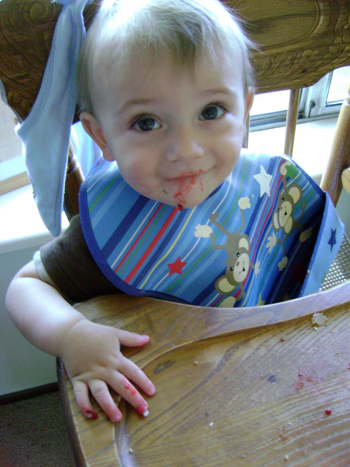 We saved a cupcake for today so that Gram and Great Grandmama could watch Trip enjoy it over Skype since they hadn't been able to join us on Saturday. He was sure excited to see them and had a great time making a big mess.
